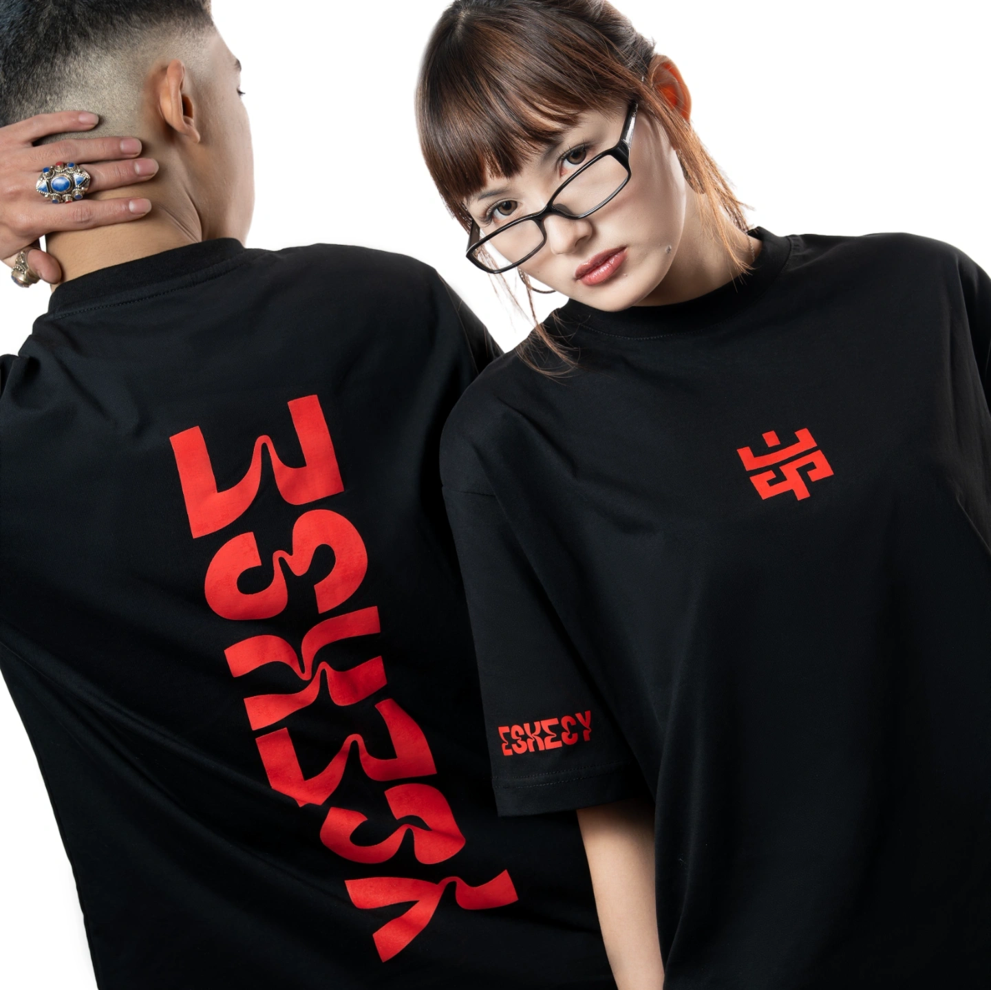 The ESKECY "Ember" Set returns in a striking Onyx Black and Crimson colorway. This drop pairs an aggressive, street-ready palette with the intricate artistry that defines the collection, offering a darker, high-contrast alternative to the original Jade set.